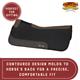 This saddle pad conforms to the horses back the very first time it is ridden on. It is a perfect pad for ill-fitting saddles resulting in pressure points, preventing slippage and roll over or even on horses with sway or round backs. It is a perfect companion for sore back providing them with therapeutic relief.